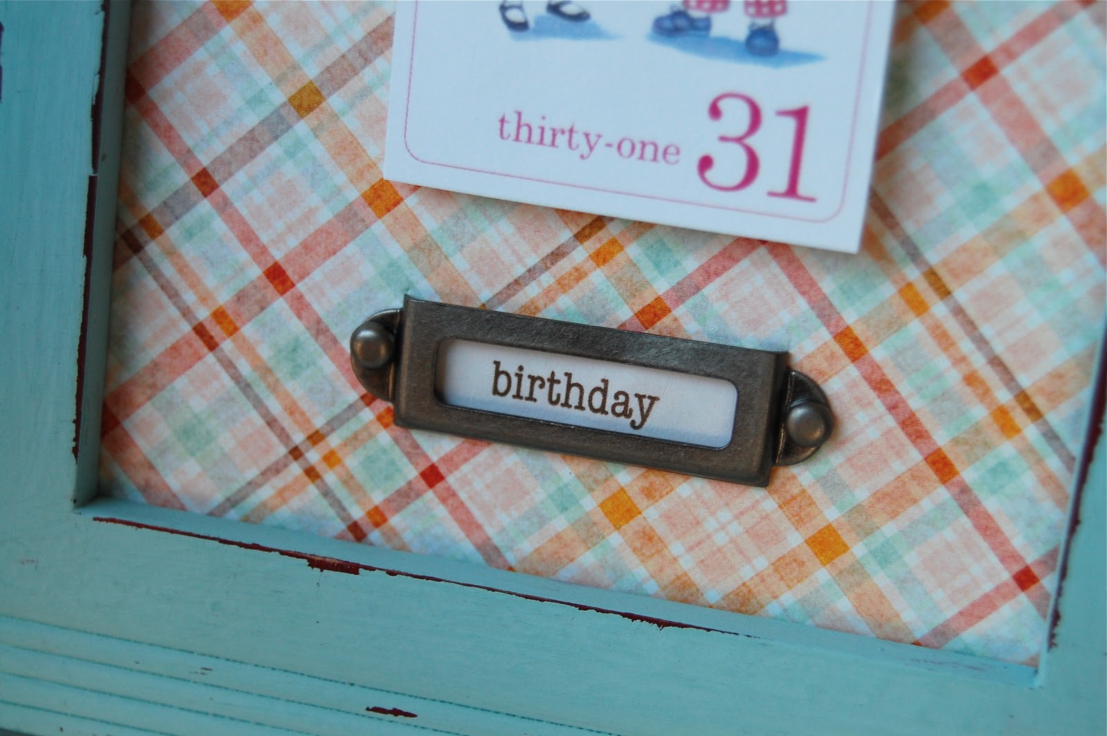 Tiffany this is perfect!! I love the frame, perfect amount of distressing, perfect complimenting paper, love the Spa Blue color too! We'd love a birthday countdown around here. :)
