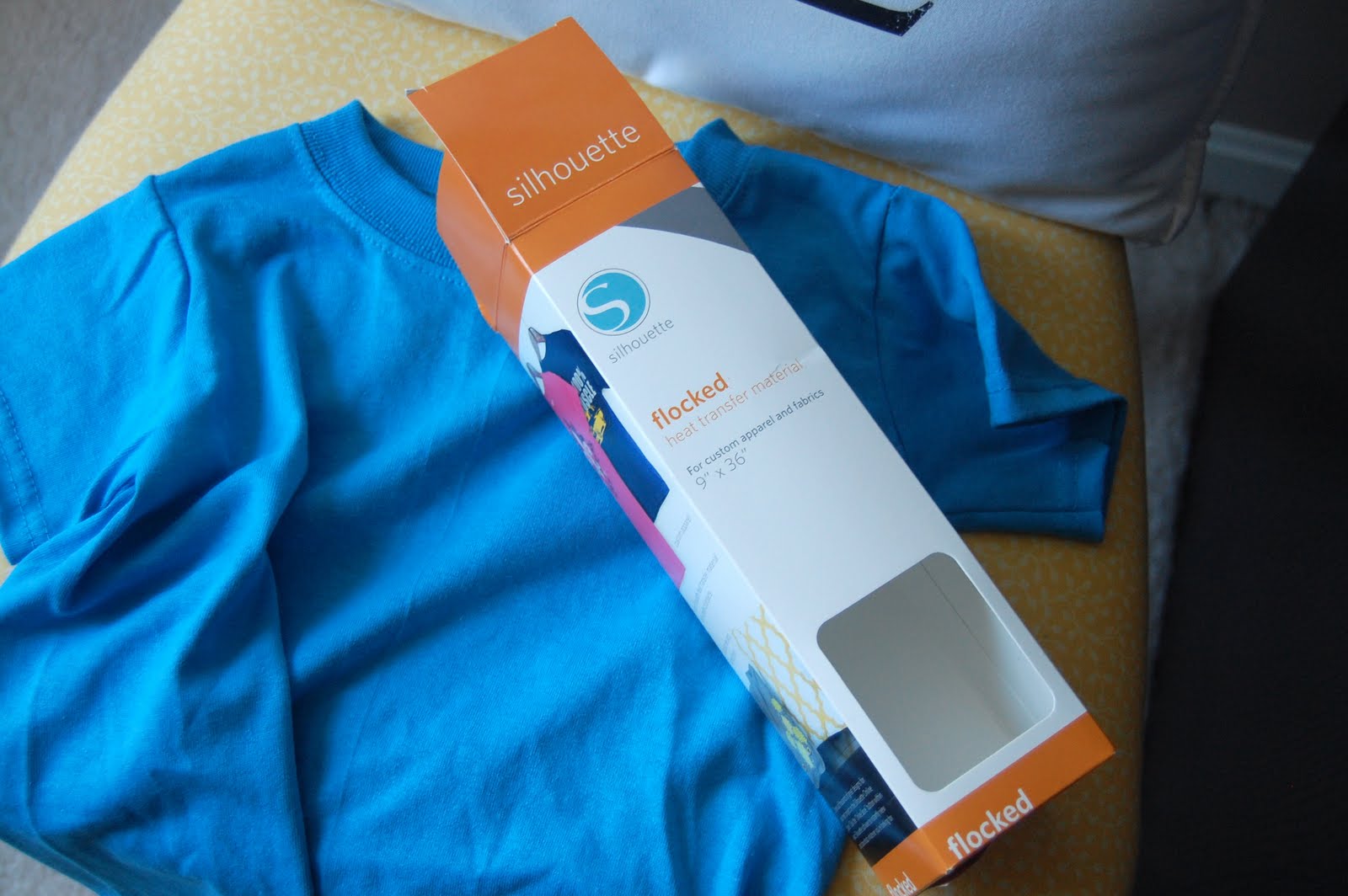 I decided to use my flocked heat transfer I received to try out from Silhouette a couple months ago. I had added a number and letter to my son's shorts when I first got it. And now it was time for a shirt.